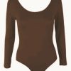 Womens Long Sleeve Bodysuit Stretch Ladies Leotard Body Top Tshirt 8-14 (ML 12-14, Brown)