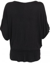 Womens Oversized Batwing Split Off Shoulder Sleeve Baggy Jersey Long Top T Shirt (Black,20)