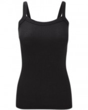 Womens Plain Ribbed Vest Tops Ladies Strappy Long Stretch Rib Top Casual T-Shirt (UK 12-14 (M/L), BLACK)