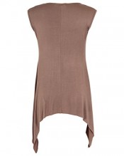 Womens Pleated Asymmetric Flared Hanky Hem Sleeveless Jersey Long Tunic Vest Top (Mocha,12)