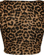 Womens Print Pattern Short Cap Sleeve Ladies Crop Stretch T-Shirt Top – Brown Leopard – 12-14