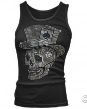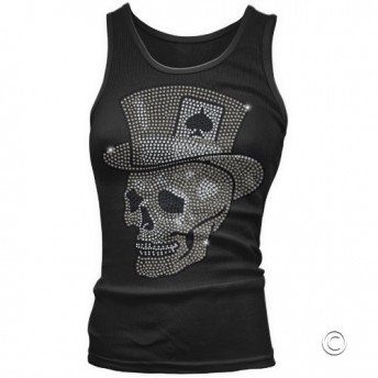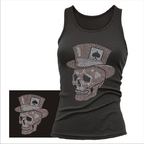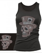 WOMENS VEST TANK TOP SKULL HAT ACE RHINESTONE DIAMANTE GEMS~LADIES SIZES 10- 16[Black,Womens Size 12]