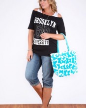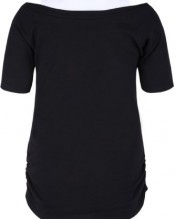 Plus size black and white bardot style 2 in 1 sweat top with white”Brooklyn University” and silver glitter number “68” print to the front. Made from 100% cotton for extra comfort and with ruching to the bottom side of the hem. Wear with jeans for a casual on-trend varsity look.