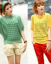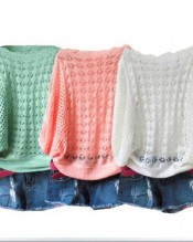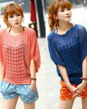 Zehui Loose Women’s Batwing Sleeves Knitwear Thin Sweater Hollow Blouse Tops Blue
