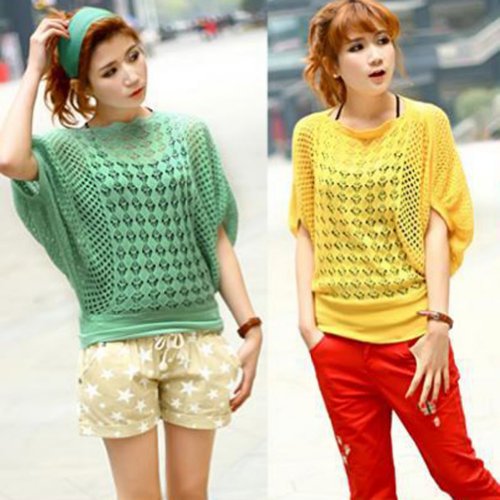 Zehui Loose Women’s Batwing Sleeves Knitwear Thin Sweater Hollow Blouse Tops Blue
