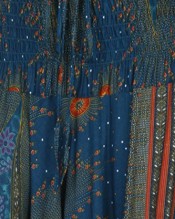 These harem pants are very roomy, loose fitting and extremely comfortable. Elasticated both at the waist and ankle, with the crotch just below the knee.