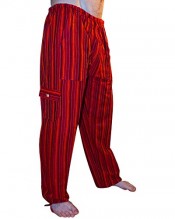Colourful cotton trousers fair trade, very confortable – made in Ecuador for Tumi. Extra Large 34″ Red.