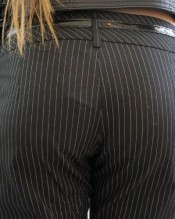 Ladies MORGAN Black Pin Stripe Trousers – SIZE UK 32″ Waist / 34″ Leg