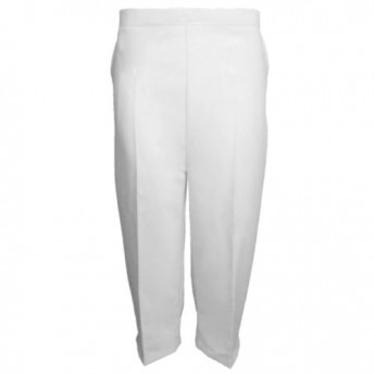 New Ladies Womens Half Elasticated Waist 3/4 Cropped Capri Trousers Plus Sizes-White-UK 14