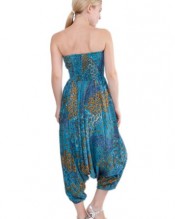 Peacock Print 2 in 1 Harem Trouser Jumpsuit Cyan Blue Plus