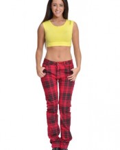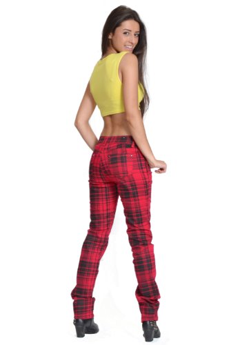 Tartan checked punk rockability skinny jeans – red & black (8)