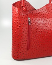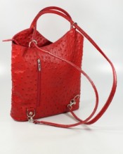 Belli® Italian Handbag Women Shoulder Bag Backpack 2in1 Genuine Leather Ostrich Embossing Red – 28x28x8 cm (W x H x D)