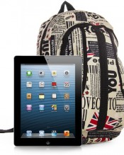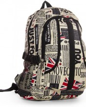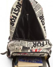A sturdy waterproof newspaper print large size backpack. Ideal for casual or school use.