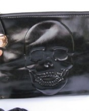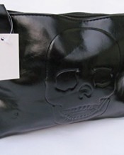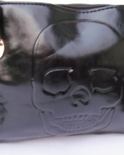 Large embossed Skull detailing, zip & clasp closure