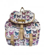 Style – Butterfly Print Backpack Approx Dimensions: 32 x 37 x 17cm (L x H x D) -One main compartment closed with magnetic snap & drawstring and secure by flapover magnetic snap. Interior: one zipped pocket with two slide pockets inside. Twin faux leather adjustable straps. Closure Magnetic Snap