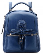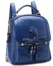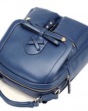 Coofit® Leisure Leather Shoulders Bag Backpack Sweet Bowknot Schoolbag for Girls (Blue)