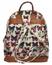 Costello Women’s Butterfly Print School Rucksack Backpack Bag Beige