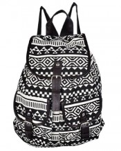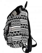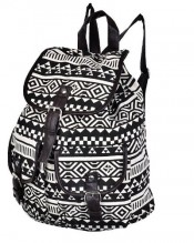 Fashion Unisex Bookbag Travel Stripe Leisure Rucksack Satchel Canvas Backpack (Black White)