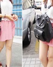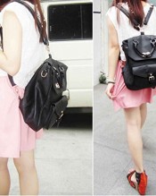 Fashion Women Casual Leather Backpack Rucksack Bag Shoulder Bag (Black)