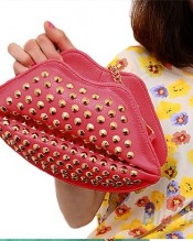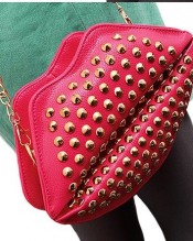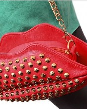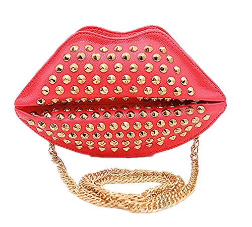 Ghope FASHION WOMANS LIP SHAPED RIVET STUDDED CLUTCH SHOULDER BAG PURSE HANDBAG (Red)