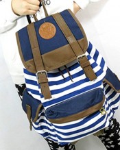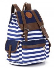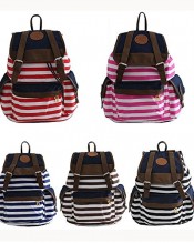 Women Girls Striped Canvas Backpack Book Bag Travel Rucksack School Bag Shoulder Bag Satchels
