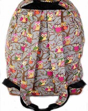 Ladies Girls Canvas Print Backpack Bag Rucksack Travel Gym School College A4 (Owl/Grey)