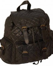Ladies Large Faux Leather Backpack Rucksack Handbag Bag Work College School (Black)