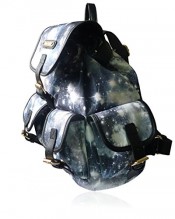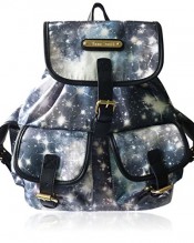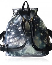 Two strong matching adjustable back straps. Main compartment is fastened up through a draw string and covered by magnetic snap flap-over for extra security.