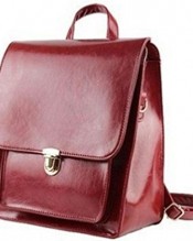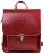 The PU backpack featuring fold-over flap with a push-in lock closure.