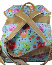SwankySwans Winking Owl Print Rucksack Bag – Honey Leather Trim – BK383