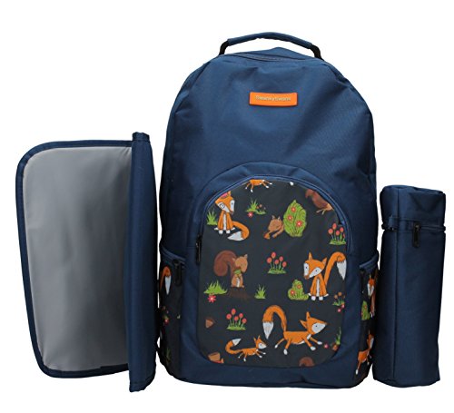 Includes changing mat, insulated bottle holder, main zip closure, internal pockets
