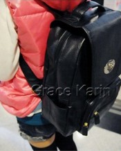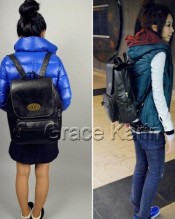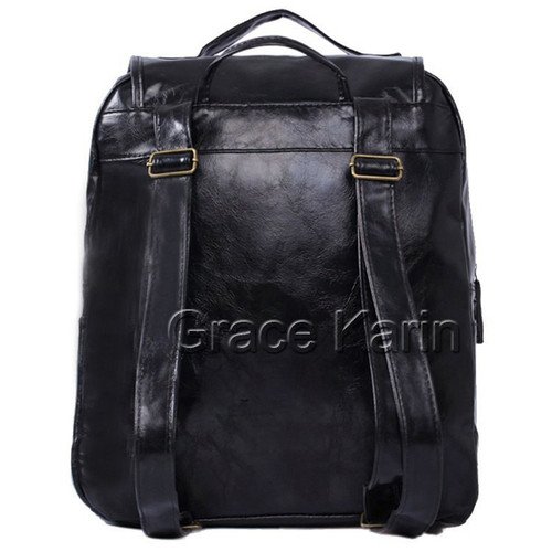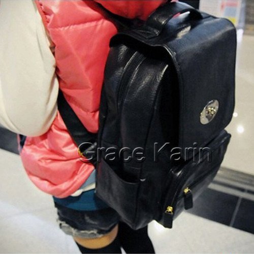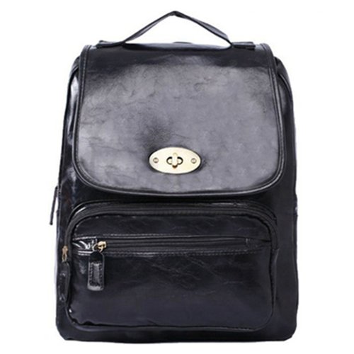 Vintage Girls PU Leather Satchel Backpack Shoulder Messenger School Bag Handbags (Black)