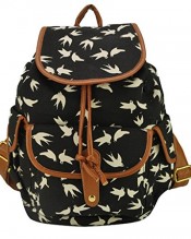 Womens Vintage Casual Daypack Fashion Pack Canvas Leather Travel Hiking Backpacks Campus School College Bookbag Rucksack Gym Shoulder Bag-Black