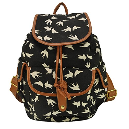 Womens Vintage Casual Daypack Fashion Pack Canvas Leather Travel Hiking Backpacks Campus School College Bookbag Rucksack Gym Shoulder Bag-Black