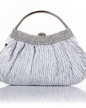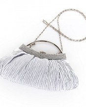 1. Luxury silk pleated with rhinestones evening handbag clutch with detachable chain