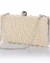1. Luxury rectangle pearl clutch bag with detachable chain strap
