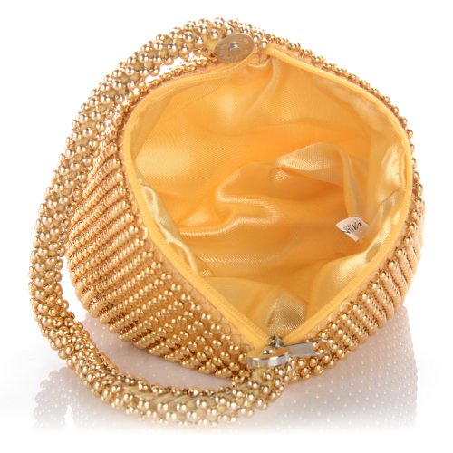 ANDI ROSE Luxury Aluminum Sequins Trihedral Designer Clutch Evening Handbag Mini Tote Bags (Gold)