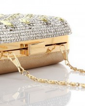 1. Luxury rectangle rhinestones clutch bag with detachable chain strap