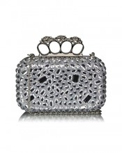 Beaded Clutch Bag Sparkly Stone Hard Case Box Handbag Party Evening Wedding Purse (Silver Knuckle Ring Box Clutch)