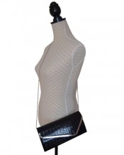 Black Crocodile Embossed Patent Leather Clutch with Dust Bag