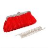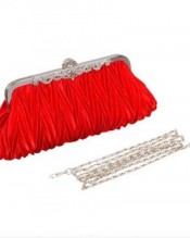 Crystals kiss lock satin pleated evening wedding prom bridal clutch lady handbag purple white silver red beige (red)