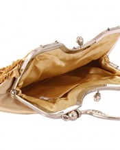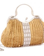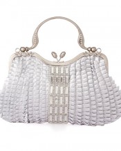 This elegant women evening bag made of fashion satin fabric with allover pleated ruffles on the front.It features a sparkling metal frame and a metal handle ,both are decorated with rhinestones and subtle carvings.It has a kiss-lock hasp closure and a row of crystals on the front center.The sparkling appearance make you more charming, distinguished and the focus of an evening party ,wedding party ,day clubs,cocktail party or prom .The interior offers just enough room for your most important items such as cellphone ,lipstick,invatation and other important receipt ,interior also provides a slot pocket for some tiny items such as cards and earings.A detachable silver chain available,which supplies versatile carrying options as a hand held clutch, tote, handbag, shoulder bag, or messenger bag.
