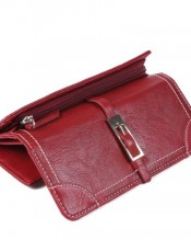 Lady trifold wallet made of Faux leather,with an exquisite buckle adorn on front.Inner including:3 photo/ID window for your photos, 9 card slots for your credit cards and bank cards, a full length slit pockets (one is with a button) for cash, important papers, event tickets, and receipts,then outside the wallet there is a money pocket for coins with a zippered.Multi-functional deisgn.
