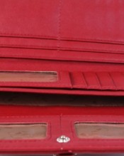 Outside the wallet there is a money pocket for coins with a zippered