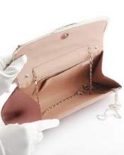 This pleated satin flap clutch features a sleek design and flapover construction with pleated detail.It has a secure magnetic snap closure, and it opens to reveal a slim, lined interior with a slide pocket perfect for stashing your keys in, plus just enough room for your ID, credit card, cash, cell phone, powder compact, and lipstick. It’s available in 6 colors and can be carried, and it comes with 2 concealable matched strap and a silver chain for use as a shoulder bag or crossbody bag.