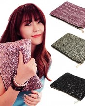 Dazzling Glitter Sparkling Bling Sequins Handbag Clutch Evening Party Bag (Black)