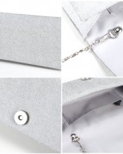 glitter-tone bag featuring a foldover top with magnetic closure, a chain shoulder strap.Dimension: 9.5*2.1*3.7 inch (24×5.5×9.5cm).Detachable chain strap: 46.4 inch (118 cm).Package: clutch x1
