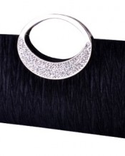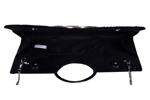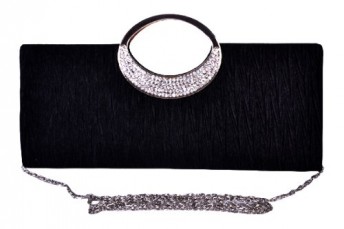 Diamante Ring Handle Purse Frill Clutch Evening Shoulder Bag Wedding Party Bag (black)