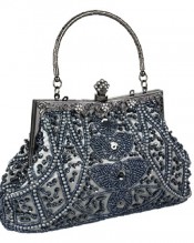Ecosusi Exquisite Seed Bead Sequined Party Clutch Prom Bag Purse Evening Handbag (grey)