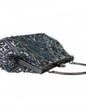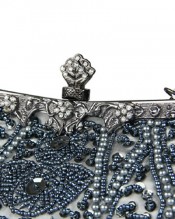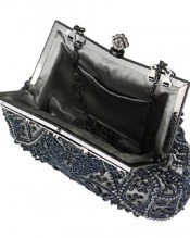 If you need a simple yet stunning evening bag to accompany you to your next glamour event, then this beaded clutch bag is right for you. There is an extravagant color matching seed beaded design with small sequins while small leaf designs with rhinestones in the sterling silver clasp. A hidden semicircular hard silver handle makes this purse easy to carry by hand and on the arm. Or simply attach the long silver chain to the interior clasps and carry over the shoulder. An open interior pocket for credit card or makeup.
